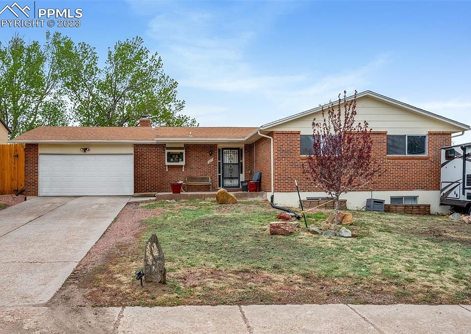 Beautiful 5BR, 3BA ranch-style home on a huge lot that backs to open space, in a desirable community in a great area and has NO HOA! Wow, the covered patio and back yard gives you a sense of peace and tranquility! The main level features a large cozy Living Room that connects to the separate Dining Room. The Dining Room has a slider to the huge and wonderful backyard with a covered patio for outdoor relaxation fun and games. The Kitchen includes Stainless Steel appliances and a beautiful backsplash. The hallway leads to 3 main-level bedrooms with a main bathroom equipped with handicap bars. The primary bedroom provides huge closet space and an attached 3/4 bathroom. The basement offers a huge family room featuring a wood burning fireplace w/Brick surround and raised hearth, 2 bedrooms, a 3/4 bathroom, and huge laundry/storage room with a sink and shelving. The 2-car garage comes with door openers, service door, and workshop. The private, fenced lot includes concrete and paver stones, access to the garage, mature trees for privacy, a storage shed for tools, toys, or whatever and another storage shed for other things. The home has an extra wide side yard for RV or boat storage, and its own back gate to the Rock Island Trail, behind the home. This incredible home is conveniently located, close to restaurants, shopping, entertainment, parks, and schools and an easy commute to Peterson AFB, Ft Carson, and much more. Hurry don't miss out, it surely will not last long!
