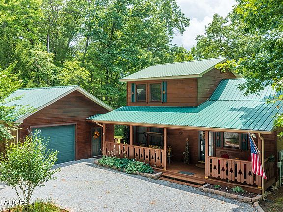 Located close to PIGEON FORGE and GATLINBURG and only 15 minutes from DOLLYWOOD. Cabin has been meticulously maintained and features a long-lasting metal roof, new HVAC system in 2019, and new Generac generator in 2022. Large covered front deck, level circle driveway, and lots of beautiful landscaping. All wood interior walls throughout cabin. Living room features lots of windows, cathedral ceiling, gas fireplace, and new luxury vinyl plank flooring. Kitchen has stainless appliances (new in 2020), large pantry, and tile flooring. Spacious dining area and an adjacent walkout to the large 307 sf covered deck with relaxing hot tub (new in 2020). Also on the main level is the primary bedroom with new LVP flooring, cedar-lined closet, and large full bath. Second level loft bedroom with full bath and large balcony area for arcade games or just use as a sitting area. Guesthouse features tongue and groove interior walls, carpeting, and full bath with walk-in shower. Spacious covered patio and private fire pit area. The 1-car garage also features ample storage space. Main cabin also has a relaxing firepit area to enjoy the serene mountain setting and wooded/seasonal mtn views. Perfect cabin for either an overnight rental, second home, or permanent residence. Cabin is located on a private drive along with other established rental cabins. No HOA! Don't miss out on this one! ***Drone photos used in listing***