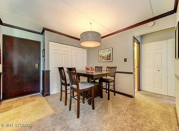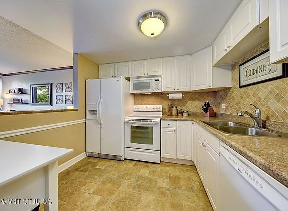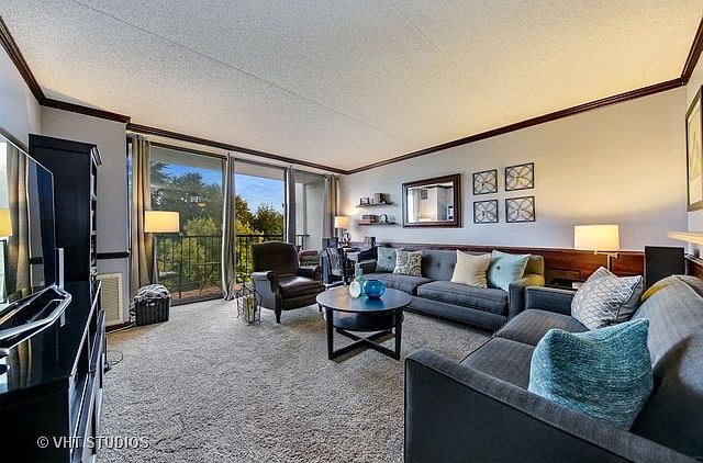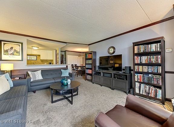 Desirable condo in Cove Landing with open floor plan. Updated and upgraded including kitchen with raised white panel cabinets and ceramic tile floors. Bathroom with updated vanity, ceramic tile surround and flooring. Loads of closet space. Tons of custom mill work including crown molding, wainscoting and 6 panel doors. Plush carpeting throughout. Balcony off of living room and bedroom. All appliances included. Clubhouse boasts pool, exercise facility, party room and sauna. Additional storage locker on unit floor and laundry in building. Secured, elevator building. Assessment includes water and cable TV. Great location is close to shopping, highways and Pace bus service to Lombard Metra Station.
