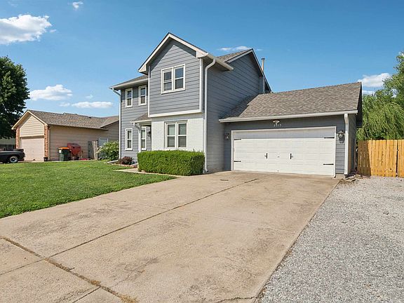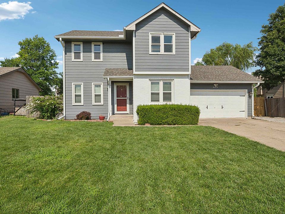 Traditional 2 story home in Goddard schools. The main floor of this home has both formal dining and eating space in kitchen, and a breakfast bar. The living room has a beautiful brick fireplace and access to the large backyard. Upstairs you will find the 3 bedrooms, 2 full baths and a conveniently located laundry. The primary bedroom has it's own private bathroom and a walk in closet. In the Basement you will find a spacious family room and a great storage room with shelving. The backyard is ready for your summer BBQs with a large deck/patio area and a play equipment all in a fenced yard. Recent updates include: New Roof and fresh paint inside and out, new carpet throughout