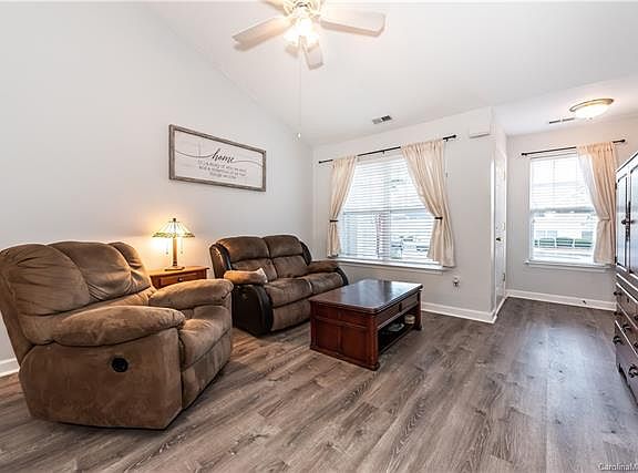 This lovely home has brand new LVP flooring, fresh neutral paint inside and a comfortable floorplan. Enjoy quick bites at the breakfast bar or share a meal with friends/family in the dining area. Split bedrooms allows for more privacy between master and second bedroom each with their own full baths. Master is wired with built-in audio speakers. Be sure to see the private patio area for outdoor relaxing in the Fall weather. Conveniently located steps to the community pool. Easy access to Lake Wylie living, shopping and dining too! USDA eligible!