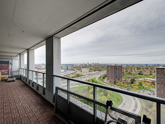 This Beautiful Unit Boasts A Large 150 Sqft Balcony. The Unit Has Open Concept Living Space And Large Windows. The Beautiful Kitchen Is Equipped With Granite Counter Tops , And Stainless Steel Appliances. Amenities Include: Concierge, Full Gym, Yoga Studio, Hot Tub ,Theater, Free Shuttle To Fairview Subway And Party Room For Your Convenience. Just Steps From 401 & 404, Ttc And Subway.