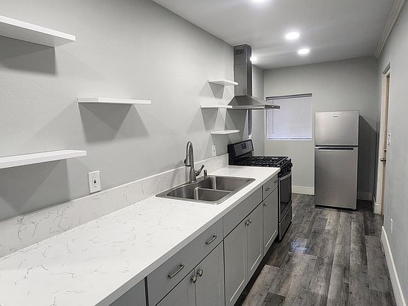 This charming, fully renovated 1-bedroom, 1-bathroom home offers 475 sq. ft. of modern living space. Stay comfortable year-round with a mini-split AC system for both cooling and heating. The property boasts a spacious gated front yard, a driveway for one vehicle, and a 90 sq. ft. storage shed. Included appliances: stove, range hood, refrigerator, washer, and dryer. Tenant utilities responsibilities include electricity, natural gas, trash, and sewer. Landlord utilities responsibilities include water, landscaping and pest control. Rent: $2,000/month | Security Deposit: $2,000. Pets are welcome for an additional monthly pet rent. Available for move-in on January 03, 2024. Tenant utilities responsibilities include electricity, natural gas, trash, and sewer. Landlord utilities responsibilities include water and landscaping.