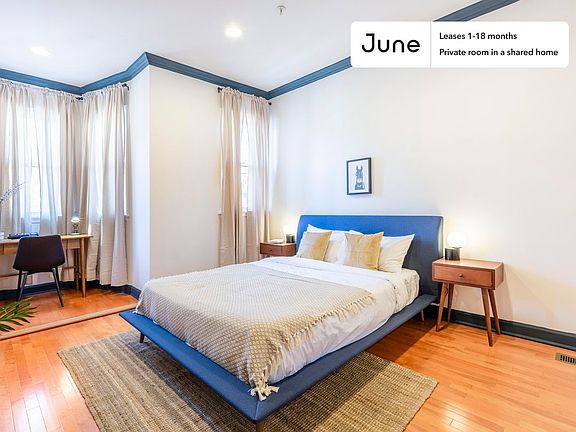 This Queen room in U-Street Corridor is available on a 12 month lease or a flexible short term (31 to 364 days) lease. You pick your custom start and end date. Monthly rent rate is determined by furnishing preference, move-in date and move-out date. Speak to a June representative for recommendations on the best stay duration for the lowest rate.