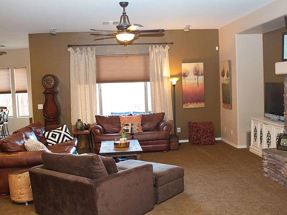 PRICE REDUCED! MOTIVATED SELLER! This beautiful home boasts an open floor plan with a split master suite. Large bedrooms and den, kitchen that overlooks the great room and attached dining room. Upgraded appliances, granite countertops, gas stove top, built in oven,bar top and designer hardware, this kitchen is a chef''s dream. Den has a gas fireplace and a large window to the backyard. The backyard has great mountain views and lots of privacy with no neighbors behind. Large dog run/grass area on the side. 3 car garage, RV parking and storage shed. This home has SOLAR. It is a prepaid 15 year lease and the system is large enough to cover the entire electric bill giving you a $0 amount due each month! This is a must see in the desirable Fireside community