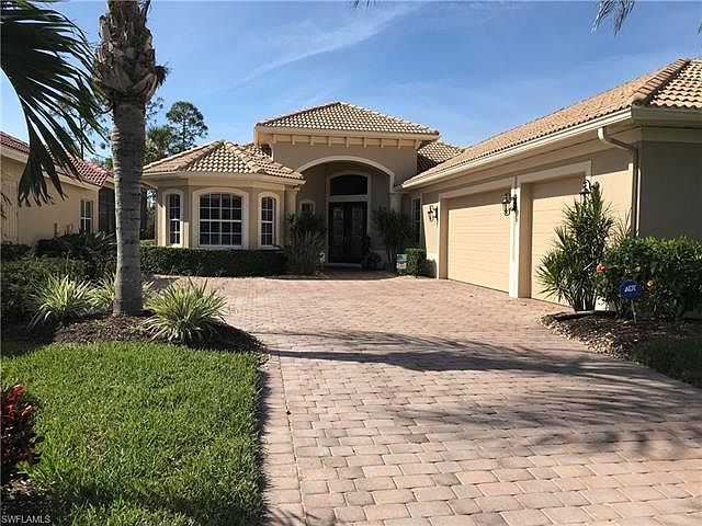 This is a MUST SEE 3 bedroom+den, 3 bath, 3 car garage located in the much desired neighborhood of Villa Grande. From the minute you walk in you will be impressed with the openness of the home and view right through to the extended lanai and then onto the golf course. The kitchen has upgraded granite counter tops and pull-out shelving in the over sized pantry. The upgraded range is GAS. Tile on the diagonal is throughout the entire house with the exception of wood in the 3 bedrooms and den. Over sized glass sliding doors completely open onto the extended lanai which is the perfect place to entertain, just lay back to enjoy the sunset or relax in the over-sized "salt-water" pool and spa. Grandezza is a very active community . Private 18 hole challenging golf course, 6 har-tru tennis courts. bocci courts, up-graded fitness center with the offering of many different classes to suit all needs. The club house has a resort size pool and spa with a cabana that serves lunch and refreshments. Restaurant has many different dinner themed dinners and a daily lunch menu. There are many restaurants, shopping ,FGCU and RSW airport within minutes , there is no better place to live!!!!