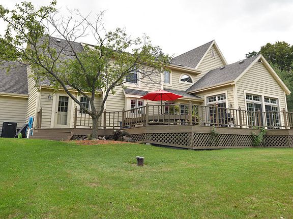 Price Reduced!Welcome home to the peace and tranquility of this picturesque retreat! The elegant finishes of this custom built home include beautiful hardwood floors throughout the main floor, stunning over-sized windows overlooking exquisite landscape, impressive built in bookshelves in library & living room, coffered ceiling, granite countertops and a breathtaking stone fireplace. This lovely home further capitalizes on gorgeous setting by including a large 4 season room and expansive deck, creating your own private sanctuary. Stroll the trails to the creek and wildlife pond. The unattached artist's studio is heated and air conditioned, and doubles as additional garage space. This is truly a unique