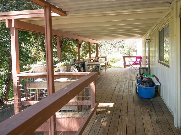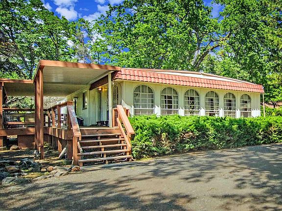 Well built Manufactured home on a beautiful lot with seasonal creek you can listen to from your deck. Two car garage was used as a shop so it has electricity wired in and a one car garage door with opener. Permanent foundation. 2 storage sheds, one has wood floors. Sewer and water is TUD. 1 year old propane central heat, hot water heater is 2 years old. 2 ovens in the kitchen. Kitchen area is large enough to be a small family room. Built in hutch in dining room. Approximate 75' block retaining wall. Great first time home, income property or just a desire to have privacy and land to expand on. Flat, terraced areas for gardening. Partial fencing. 1972 Manufactured home so cash only.