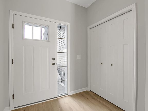 This interior unit home has 3 bedrooms, 2.5 bathrooms, and 2,277 square feet with a 2-car garage. The welcoming front entry is filled with light. The main-level open floorplan has a large kitchen overlooking the dining area and great room. It is appointed with light grey painted cabinetry, beautiful quartz countertops, and a white subway tile backsplash. The stainless steel appliances include a gas slide-in range, a microwave, a dishwasher, and a French-door refrigerator. The oversized center island has additional space for seating. There is a desired walk-in pantry for food storage. The electric fireplace in the great room provides ambiance on those cool evenings. There is light-toned, durable luxury vinyl plank flooring throughout the main level. The bedrooms are located on the upper level and are designed with walk-in closets. The loft could be utilized for a hang-out space or play room. The owner’s suite has a large walk-in closet, linen closet, and an attached bathroom.