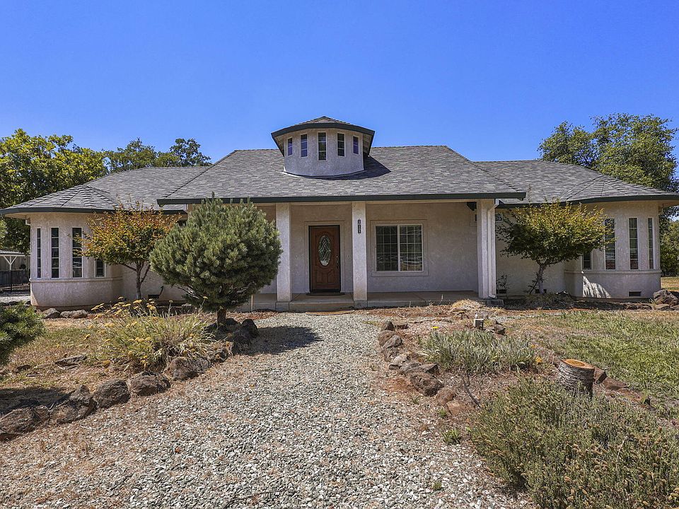 Career change drives sale of this custom North Redding Move-In ready home, featuring a new 28-panel owned solar. This 3BR, 2.5 BA offers an open layout with a den/poker room, rich wood floors, plush carpeting in bedrooms, and a cozy gas fireplace. The Master Bedroom suite boasts another romantic gas fireplace and a spacious master bathroom with ample storage, a jetted tub, and a glass block shower with dual heads. A 574 sq ft storage/game room with fresh carpeting adjoins the large garage with an 18' X 9' door and 10' ceilings. Secure storage abounds with a 48x10 covered carport running the length of the outbuilding. Recent updates include a 2-year-old roof and brand new A/C unit. Enjoy the entertainer's paradise backyard with a massive covered patio. Plus, a 32 x 24 RV carport with full hookups (30 & 50 amp), along with a 24' above-ground pool and plenty of parking in the U-shaped driveway. Close to Tierra Oaks golf course, Shasta Lake, and downtown Redding.