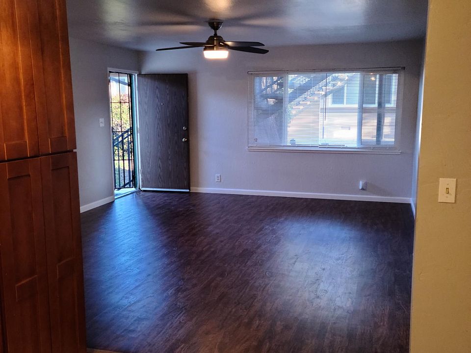 This House is part of a Three-Plex, it is located In a great neighborhood with schools and parks located across the street. Quiet neighborhood, no loud neighbors. 1 block from Castro Valley Blvd. Easy access to freeway and shopping is walking distance away. 2 bedroom, 1 bath, laundry room for washer and dryer. Huge backyard. Garage and driveway parking. No Cigarette/Tobacco Smoking. New Laminate Wood floors throughout, Freshly Painted Doors and Hallway Cabinets.New Toilet and Shower Door 1 year lease. Tenant responsible for all utilities