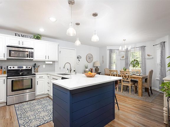- Kitchen/Dining Room Combo, Breakfast Bar, Eat-in Kitchen, Pantry, Solid Surface Countertop(s), Double Vanity, Lever Faucets, Separate Shower, High Ceilings, Open Floorplan, Walk-In Closet(s)