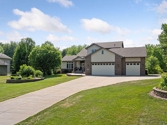 Private setting with almost 1 acre and stunning backyard, patio, deck overlooking gardens and man-made pond and waterfall. Stunning views with wildlife, spacious entry way and living room with gas fireplace. Kitchen has hardwood floors, center island and pantry. Main floor laundry with sink, bedroom/office, and full bath. Upper level has 3 bedrooms, master suite with jetted tub and separate shower, walk-in closets. Lower level is walkout and has bar and kitchenette, fireplace, entertainment area, game room, bedroom and 3/4 bath. Could be used as mancave or apartment. Shared association outlot next to property plus 18 acres of wooded trails to hike or ride ATV/snowmobiles. Insulated, heated garage with sink, and eleven foot ceilings with drive through back door garage.