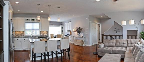 Outstanding, custom updates. Main lvl was completely redone in 2012, custom kitchen, living room, railing, lights, built ins, granite, SS kenmore elite, wood floors, knock down ceilings, iron rod rail, bathroom, calf closets carpet & much more.
