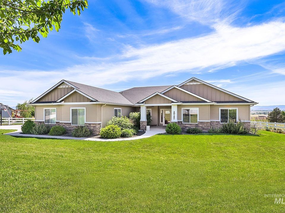 Discover the ideal urban homestead on this charming 1.02-acre property with stunning views of the Owyhee Mountains. This versatile land is perfect for your homesteading dreams, allowing up to 2 cows, other live stock, and already equipped with chickens for fresh eggs. Enjoy the beautiful deck for relaxation and breathtaking sunsets. Inside, the split bedroom design ensures privacy, and large windows fill the home with natural light. A dedicated office space suits remote work or hobbies. The property features a large 3-car garage, garden beds for your green thumb, full fencing, irrigation, and ample RV parking. Embrace the tranquility of rural living with modern conveniences nearby. This is more than a home—it's a lifestyle opportunity waiting for you.