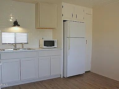 This mobile home blends comfort and versatility in the serene town of Mayer, AZ. This property offers 2 bedrooms and 1 bathroom in the main residence. The converted garage is a fully equipped casita with a kitchenette, bathroom, and separate entrance, ensuring convenience and privacy for occupants Co-living space. This is 2bedroom 1 bath single wide home. The garage is currently occupied by a quiet person. Water-Waste-Electricity-Propane are shared.