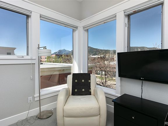 On a quiet side street off Pearl with a rare 1-car garage, this condo combines Downtown living with peace & privacy. Sip cocktails or coffee while enjoying stellar views of the Flatirons from the top-floor master suite with its rooftop patio and and 5-piece bath featuring a steam shower and jetted tub. Ideal for roommates or guests, the main level has a full bath, second bedroom with walk-in closet, an open living, dining and kitchen area, a deck facing south and enclosed patio facing west. The 3-season patio (not included in total square feet) makes a perfect office and sitting area with more mountain views. Don't miss the 3D virtual walk-through tour at https://app.cloudpano.com/tours/rYNiRHDb8v