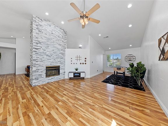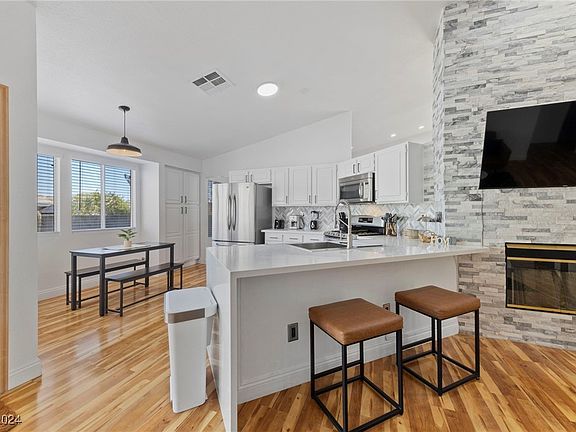 Fantastic house! This move-in ready, single-story home in Henderson is a true gem. Recently renovated, it features 4 bedrooms and 2 baths with vaulted ceilings, a striking stone fireplace, new AC, and modern fixtures. Abundant natural light floods the space, enhancing the luxurious, private, and comfortable ambiance. The beautifully upgraded chef's kitchen boasts stainless steel appliances, a waterfall island, and refreshed cabinets, offering a warm and inviting atmosphere. The private, serene backyard offers a peaceful retreat, completing this exceptional home. Move in and make it your own!