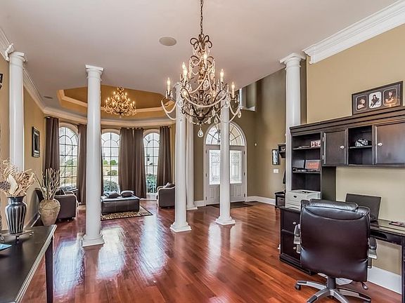 - Interior: 10 ft+ Ceil Main, 2-Story Foyer, Cathedral Ceiling, Double Vnty Other, Entrance Foyer, Hardwood Floors, Trey Ceilings, Walk-In Closet(s), 9 ft + Ceil Main, Bookcases, Wet Bar