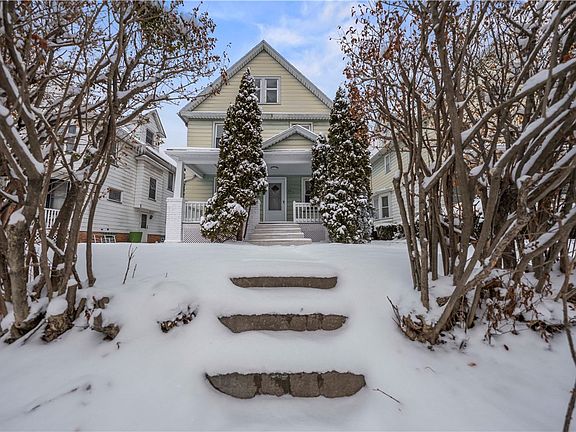 Welcome home to this beautifully renovated 3-bedroom, 1-bath classic colonial located in the desirable Northland-Lyceum Neighborhood. Originally built in 1920, this charming residence offers 1,502 square feet of living space, skillfully blending its historic charm with modern conveniences. As you step inside through the grand entranceway from the inviting front porch, you’ll discover a home transformed with meticulous attention to detail. Enjoy peace of mind with a brand-new roof and a high-efficiency furnace paired with central air conditioning, both updated in 2024. The replacement windows throughout the home ensure energy efficiency and comfort. The interior features elegant luxury vinyl plank flooring and a sleek, modern kitchen equipped with stainless steel appliances and ample counter space; including a peninsula for all your culinary needs. The completely remodeled bath is inviting, adding a touch of contemporary elegance to this charming home. The basement boasts energy-efficient glass block windows enhancing both security and insulation. The finished third-level flex room not included in the listed square footage provides a versatile space perfect for a home office, playroom, or a personal retreat. Outside, enjoy the classic appeal of an open front porch and the convenience of a detached 2-car garage with a brand-new Garage door. Situated on the border of the town of Irondequoit, this property offers the benefits of low city taxes while being just minutes away from Irondequoit Bay. Don’t miss out on this opportunity — make it yours before it’s gone! Delayed negotiations are scheduled for January 27th at noon.