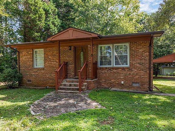 This CHARMING 2BR/1BA brick bungalow awaits you! Close proximity to HPU, Shopping, Restaurants and all High Point has to offer-so many possibilities! The natural setting makes you feel like you're in the country yet still have convenience to all you need! The covered back porch is perfect for relaxing in the evenings! Detached carport and ample-sized storage building! So many beautiful details add to the charm of this home. Eat-in Kitchen with plenty of cabinet space and smooth top stove that has an open flow into the living area! Recessed lighting tucked away in the ceiling wood beam gives a lovely ambience of peace to this great home. Beautiful tilework in kitchen and bathroom. Laundry/entry located right off kitchen provides ease and convenience. Did I mention this property line backs up to a horse sanctuary? You can occasionally see the beautiful wild horses from your back yard! A true fairytale! This is the one you've been searching for!