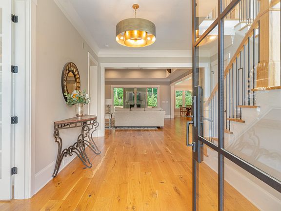 Come home to luxury with this stunning custom-built home featuring a three-car garage, nestled in a quiet cul-de-sac in North Raleigh's exclusive Falls Preserve community. Just minutes from premier shopping and local amenities, this home offers the perfect blend of elegance, comfort, and convenience. The open floor plan showcases rich hardwood floors and high-end finishes throughout. The gourmet kitchen is a true showpiece, with marble countertops, top-of-the-line stainless steel appliances, and sophisticated designer lighting flowing seamlessly into a spacious living area with wood beam accents and a striking fireplace. On the main level, you'll find a luxurious owner's suite and a flexible guest room or study to suit your needs. Upstairs, a vaulted game room with a wet bar sets the stage for stylish entertaining. Outside, a covered porch invites you to relax or host with ease, featuring a built-in grill and outdoor fireplace. The fully fenced yard offers privacy and room to enjoy the outdoors in peace.