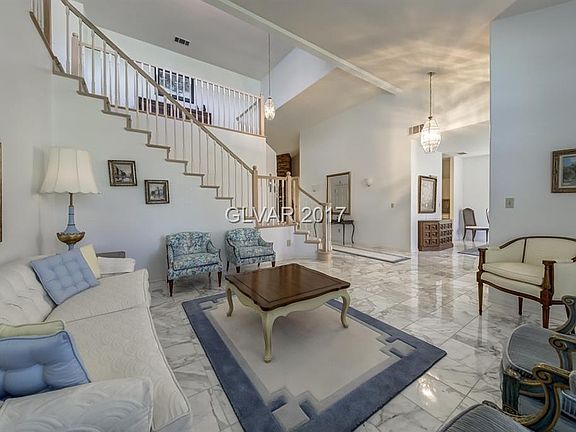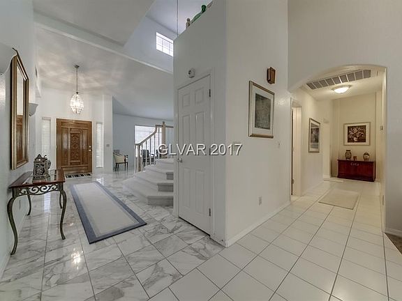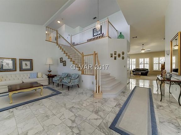 Beautiful Green Valley Gated Summer Hill Estates Home. Four bedroom home, large formal separate living and dining rooms elegantly appointed with high ceilings, marble floors and dark brown wood floors in all bedrooms and second floor. Open family room with vaulted ceilings and Stacked Stone two-way fireplace, sits across from the breakfast bar kitchen and sunny kitchen nook. The home has a modern kitchen with newer Granite counter tops, Kitchen Aide oven/microwave, Sub-Zero fridge and custom cabinets. Master bedroom located downstairs has a luxury layout with two-way fireplace that opens up to the Den sitting room . Spacious master bath with oversized shower, porcelain gray Wood like floor, garden tub and huge Walk-in closet. Large Laundry room with cabinets, sink and washer/dryer included. Oversized three car garage. Easy to care for Desert Landscaping in the backyard along with mature foliage provides a quiet and private feel in order to enjoy the relaxing in ground spa that seats up to 8 people. The backyard features a huge outdoor covered patio area that extends the full length of the property. The backyard speakers and patio furniture are included. This home is located in an established family community in the heart of Green Valley with parks and walking trails nearby including Cornerstone Park and the Henderson Recreational Center.