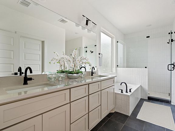 Introducing The Palmera 2.5-story home located in the emerging Foxfield community in North Austin, near the Domain. This new construction offers 2,869 square feet of living space, featuring 4 bedrooms and 3.5 baths. The lower level boasts 10-foot ceilings, creating an open and welcoming atmosphere. The kitchen includes practical 10-foot cabinets and is filled with natural light. Quartz countertops add a touch of elegance, and the rainhead shower in the bathroom provides a relaxing experience. Durable wood vinyl floors are found throughout the downstairs area and part of the upper level. The primary bedroom, located upstairs, offers comfort and privacy, while a guest bedroom on the lower level ensures convenience. Enjoy outdoor living with a second-story screened-in patio, perfect for relaxing while maintaining comfort and privacy. The home backs up to Walnut Creek Park, providing a natural backdrop. Each detail of this home has been thoughtfully selected by an interior design team to balance aesthetics and functionality. Dont miss the opportunity to make The Palmer your new home, offering modern living in a promising new community in North Austin.