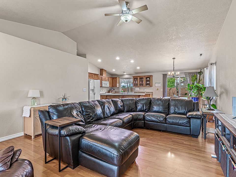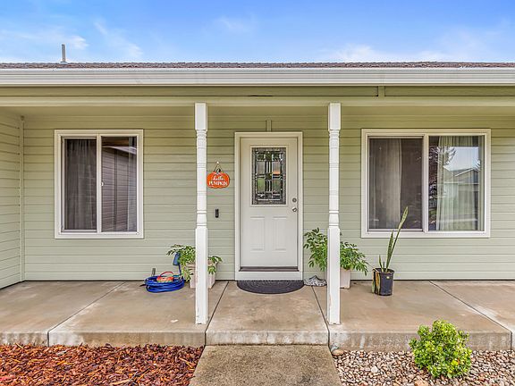 Quiet Central Point neighborhood with great amenities! This home is in a prime location, tucked into very back of the neighborhood with 20 acres of peaceful farmland behind it, so it has all the benefits of the neighborhood amenities and still feels peaceful and private. The inside is just as spacious thanks to the open-concept living room, dining room, and kitchen, with vaulted ceilings that allow natural light to flood the space and a huge island/breakfast bar. Both guest bedrooms are comfortably-sized and the generous primary bedroom features a walk-in-closet and ensuite bathroom. The covered front porch gives the home charming curb appeal, and the covered back patio offers the perfect space for relaxing with morning coffee or firing up the grill. The yard is just the right size for furry friends to have space to run, and the sellers have added a cute garden area for anyone who enjoys spending a little extra time in the sun. This is a lovely, turnkey home at an affordable price.