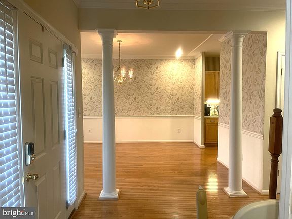 Step inside this stunning, well-maintained colonial home situated on a corner lot with a stone front and wrapped porch in the sought-after Waterview community in Essex, MD. This spacious property boasts 5 bedrooms and 3.5 baths. The main level features beautiful hardwood floors, a gas fireplace, a large eat-in kitchen with Corian countertops, and an island. Additional highlights include a separate dining room, office space, and generously sized rooms. Ample natural light fills the home through dining room bay windows, while crown molding and chair rails add a touch of elegance. The finished basement has a dry bar, laundry facilities, a 5th bedroom, and a full bathroom. An enclosed deck overlooks a beautifully landscaped yard with a patio, providing a serene outdoor space for relaxation and entertainment. The property includes a detached 2-car garage with a private driveway and extra street parking. Leased solar panels help keep utility bills low. All are near shops, restaurants, and major commuter routes. Great for entertaining or just enjoying your private oasis. Whether hosting gatherings or simply enjoying your private oasis, this home is a must-see!