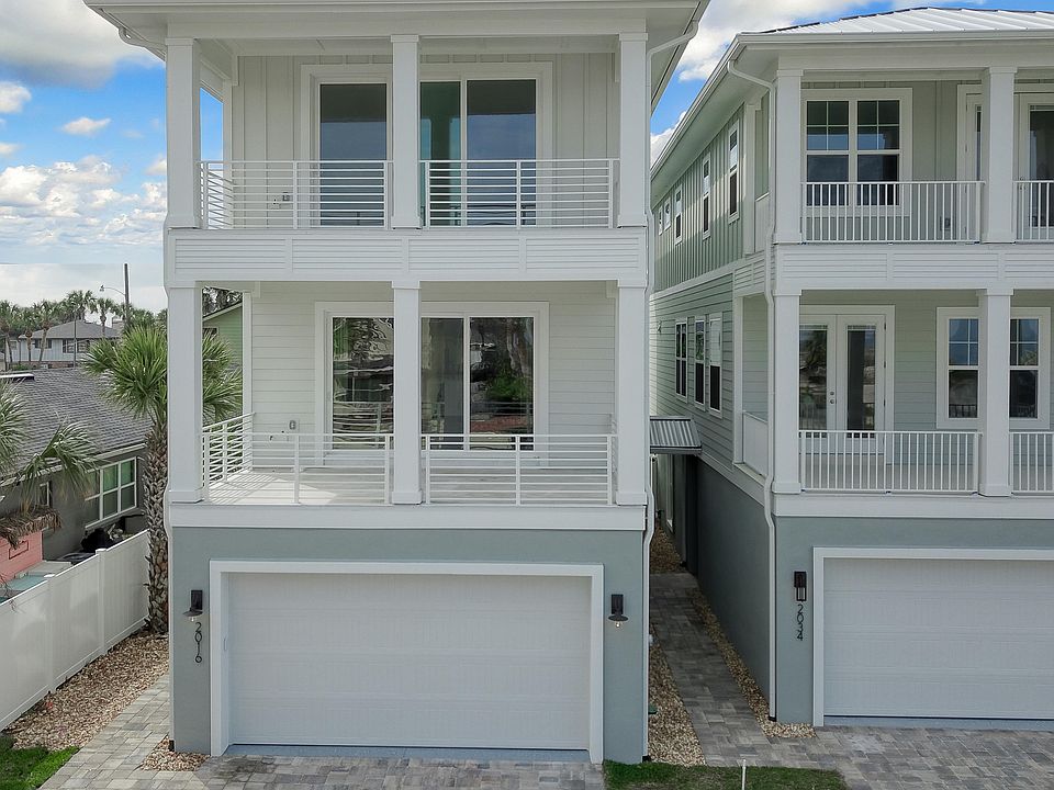 Superior construction, custom finishes and stunning features amidst breathtaking ocean views. Enjoy your coastal lifestyle in Old Florida inspired architecture perfectly coupled with modern influences in a three-story villa built by Atkins Builders that includes: Ocean views, Spacious balconies, Fee Simple Ownership (No CDD or HOA), Custom Cabinetry, Upgraded Appliances, Rear Yard, Outdoor Shower, and an Elevator!Laundry on 1st and 3rd floor. Zoned HVAC with Wi-Fi programmable thermostat. His and hers closets in master bedroom. All wood custom cabinetry with soft close doors and drawers.