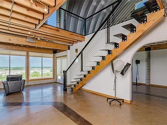 Panoramic views of the St Louis skyline from this one-of-a-kind contemporary, neo-industrial loft-style 2 bed/2 bath property perched high on the bluff offers a private escape on 1.93 acres while still so close to the city and interstates (just 12 minutes from downtown STL). Gated entrance. Host a happy hour from your exquisite patio overlooking the bluff as you showcase your sunset views. Enjoy a glass of wine as you stargaze or watch the storms roll in from the floor to ceiling wall of windows as you kick back and relax. Property would also make phenomenal event space, office, studio, second home. The modern styling continues with stained concrete floors on main floor, concrete countertops in kitchen with island, all stainless steel appliances (that stay), main floor laundry, open staircase, 2nd story balcony accessible from the master bedroom complete with rounded metal ceiling...an artist's dream come true. Must view by appointment only - do not enter property without an agent.