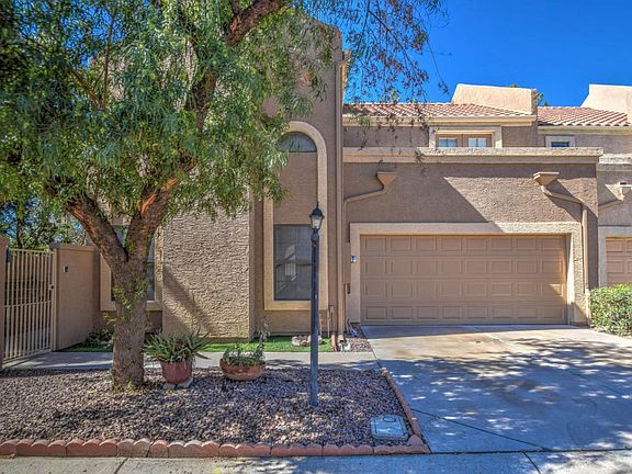 Hard to find townhome with attached two car garage in ideal Chandler location! This home feature new wood style flooring in the living areas & new carpet. Relax by the cozy fireplace in the living room. The homes is freshly painted both inside and out. Downstairs Master features his and her closets and private bath with dual sinks, and separate tub & shower. The large kitchen overlooks the rear yard and eat in area. Formal dining for entertaining your guests. Newer A/C unit! Plus this home is the only one in the complex that features double french doors leading out to the balcony! Community is a small close knit subdivision with a community pool.