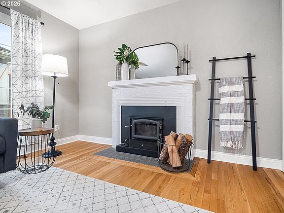 Perfectly located in the desirable Woodlawn neighborhood. Just a few short blocks from Dekum's hip, eclectic restaurants, cafes, and shops. This darling home is filled with the perfect amount of vintage charm and modern updates, the floorplan is ideal and has endless possibilities including a finished basement, with its own separate entrance. The large windows provide a lovely amount of natural light throughout the home. In the spring and summer, the front windows frame a gorgeous established fig tree and many other blooms and greenery for the perfect views. You will enjoy the original hardwood floors gleaming as they were just redone, the charming dining room built-ins, the appealing arches, original details and sophisticated fireplace mantel with woodstove insert for ultimate cozy-ness. The main living area is complete with two generous size bedrooms and one full bath, a lovely proper dining area, a comfortable living room and a renovated kitchen complete with everything you would need. The basement was recently finished and waiting for your next vision, holding endless possibilities to provide additional living space or whatever you might imagine. The fenced backyard is complete with a brick patio, plenty of room to garden, or host summer gatherings. Recent significant updates include a new roof in Fall of 2022, new windows in 2023, new exterior paint in 2023, new interior paint, new LVP flooring in the basement and the front yard was recently landscaped. Did I mention the home has Air Conditioning! Plenty of off-street parking in the secure driveway complete with one attached garage. Close proximity to all amenities. You must come see this charming home for yourself, its bright, comfortable and presents an amazing amount of opportunity.