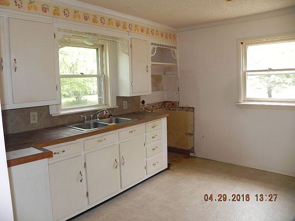 1.5 Story home with approx 1300 fin sq ft, 3 BR, full unfinished basement, vinyl siding, nice front deck, double detached garage, large lot. Needs some TLC but priced accordingly.