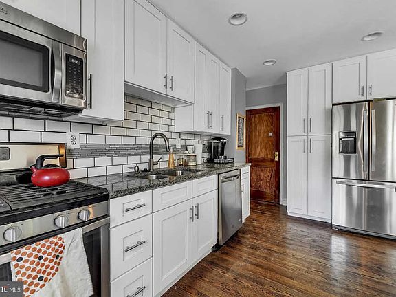 Back on the market due to buyers financing falling thru, home has been inspected and approved, This lovely end of group home has been updated throughout. Custom kitchen design, updated bathrooms, beautiful original refinished wood floors, Finished attic could easily be an awesome master suite. Basement is fully finished and could be a 4th bedroom. Fenced backyard! Don't miss this opportunity for a move-in ready home at a great price!