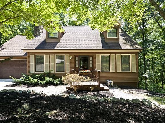 emodeled Cape Cod on private wooded lot! Move in ready complete with updated kitchen w/ cherry cabinets, lots of counter top space & large eat-in area. Spacious great room w/ gas fireplace. Main level master suite! Upstairs features 2 large bedrooms, great closets & extra storage. Features include neutral decor, new paint, main level laundry, security system, quiet subdivision, & large exterior deck. Unfinished basement perfect for expansion! Better Hurry!
