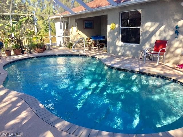 Sitting on a private, corner lot in a quiet neighborhood in SW Cape, this single family home, with 3 bedrooms, 2 bathrooms and a 2 car garage features a lovely private backyard, fenced and shaded by trees, providing privacy to the pool deck. Two sets of sliders lead out to an undertruss area, perfect for setting up a dining or lounging area. The pool cage has recently had new screening. Inside the home has a split floor plan, with the master suite on the opposite side of the home as the other two guest bedrooms. The master is large, with two walk-in closets, and a tiled walk-in shower. The main living area has vaulted ceilings, and an open floor plan, perfect for entertaining guests. The AC is brand new in December, 2017. Make this your new family home or your vacation home!