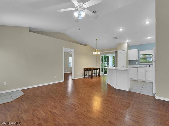 Fantastic SW Cape Coral location! Move-in ready 3-bedroom 2-bath single-family home, centrally located in highly desirable Southwest Cape Coral. Close to shops, restaurants, schools, beaches, boating, and all the best southwest Florida has to offer! Minutes from Veterans Parkway and Pine Island Road. Situated on a corner lot, home features a fully fenced in and expansive backyard. The six-foot white vinyl privacy fence has 3 gates including a 12-foot oversized gate with street access, perfect for safe and convenient storage of your boat, RV, vehicle, or trailer. The kitchen features bright natural light, white cabinets, and a center island and opens to the living room. Your expansive master suite features a walk in closed, walk-in shower, and dual sinks. Split floor plan, with other two bedrooms and second bathroom, with shower tub combo, located on the opposite side of your master bedroom offering privacy. This home also offers a laundry room off the garage with counter and cabinet space for storage (washer & dryer included). Screened lanai porch features 4-person hot tub as well as roll-down sunshades for the perfect Southwest Florida afternoon. Book a showing today!