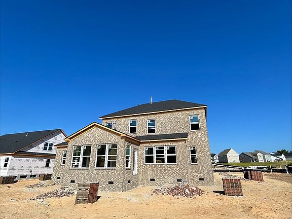 The Cameron Floor plan Elevation E, Rear sunroom, standing tub in primary bath, closed upper flex room. Locate in Woodcreek Farms.
