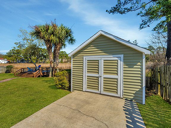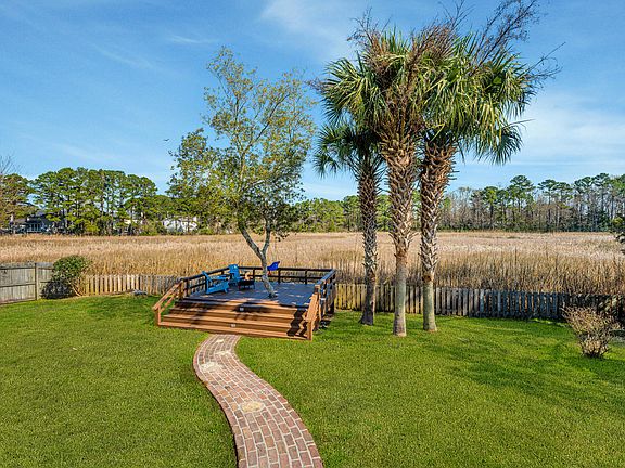 On the marsh with expansive vistas! Lots of outside fun in the fenced backyard with large deck, she shed and wonderful marsh side platform for gatherings or relaxing. Other features include home located on a short cul de sac, two car garage, lawn irrigation system, vaulted ceilings, separate dining room, family room and sunroom, and numerous upgraded light fixtures and Plantation Shutters. Large eat in kitchen with island, solid surface countertops and Jenn-Air stainless appliances. There is an elegant master suite with tray ceiling and bathroom with jetted tub. Lots of hardwood and tiled floors. There is no HOA but you have the option to join the Canterbury Woods HOA with pool, tennis courts, playground and more.