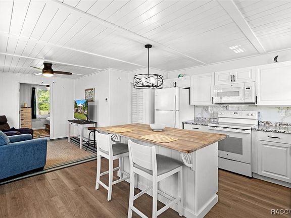 Reel in the good life in this meticulously maintained tiny home, perfectly positioned for outdoor thrills, vibrant downtown experiences, and delightful lakeside dining! Located just around the corner from the legendary Lake Rousseau, a hotspot for award-winning bass fishing and three convenient public boat ramps, a local restaurant for good eats and even better company, your Florida adventures await. Plus, you're just a short drive from Crystal River, recently crowned the Top Downtown in Florida and a Top 50 nationwide by HGTV – offering charming shops, delicious dining, and a lively atmosphere. Step inside via one of two entrances and discover a thoughtfully designed space featuring a welcoming kitchen and living area that flows seamlessly into your cozy bedroom and stylish bathroom. Built in 2022 with a durable metal roof and efficient Mr. Cool wall-mounted AC, this home offers modern comfort and peace of mind. Enjoy charming details like a butcher-block eat-in kitchen island, easy-care flooring, washer/dryer hookups and a delightful bathroom boasting a large walk-in shower. The side entrance features a storm door, perfect for enjoying Florida breezes bug-free. The outdoor living is just as enticing! Relax on the included patio furniture under the shaded area with a grill and savor fresh fruit from your own mature fruit trees. Even the water is a treat, filtered from your private well! This turnkey tiny home comes fully furnished inside and out! Just pack your clothes, your boat/kayak/paddleboard, and a few kitchen essentials – everything else is here! Plus, an existing RV hookup offers even more flexibility for guests or your own adventures. Don't miss this incredible opportunity to live near world-class fishing, an award-winning downtown, and a scenic local eatery!