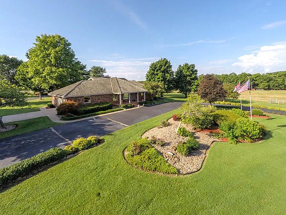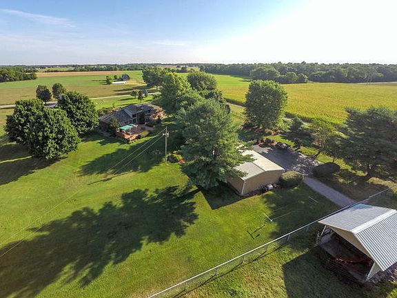 Welcome to the prettiest place in the countryside just North of Aurora, Missouri. This 107 acre country estate is nestled among the perfect combination of intensive grazed pasture, fertile crop ground, its own productive alfalfa hay meadow along with many, many improvements that include a Hay Barn, Livestock Barn with Corral, Priefert tub & WW Squeeze Chute, Honey Creek, wells, waterers, a pond, a huge detached Garage as well as a lovely 3 Bedroom/4 Bath Basement Home with asphalt circle driveway surrounded by beautiful landscaping. Hardwood flooring at the Entryway continuing into the Living Room with floor-to-ceiling wood-burning Fireplace and a wall of windows overlooking a large Deck that spans almost the entire length of the house that includes a Sauna and Hot Tub. Hardwood flooring