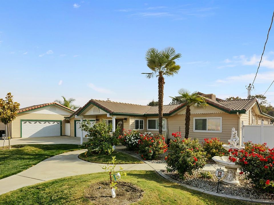 Country property on over an acre with separate guest home now available in Tulare! The main house offers over 3,300 square feet, a 4-car garage, vaulted ceilings with exposed beams, 4 bedrooms, 2.5 bathrooms, living and family rooms, a large bonus/game room, and a huge covered patio with a spa. The kitchen features granite counters, stainless appliances, a generous center island, a walk-in pantry, and ample cabinetry and storage options. The spacious backyard provides additional patios areas, a gated pool area, a large grass area with trees, a dog run, and a storage shed. There is also 14 owned solar panels, a newer A/C unit, and a water softener system. The guest house is approximately 1,000 square feet with 1 bedroom, 1 bathroom, laundry, living and dining areas, and a complete kitchen. The guest house has its own septic, propane, and electricity meter. The massive shop is 40' x 46' feet with a tall rollup door! This hard-to-find property won't last long! Call for your showing today!