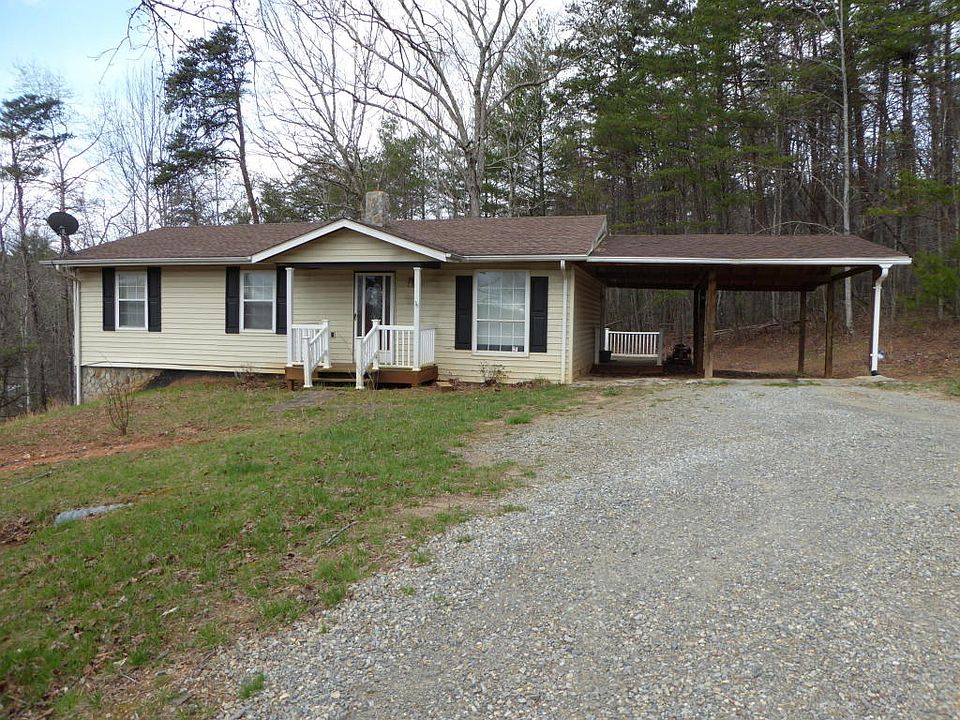 Maintenance free vinyl/stone ranch w/1.01 acres. Located in a very private remote setting. Living room, eat-in kitchen, master suite w/half bathroom, 2 family bedrooms, & full hall bathroom. Full unfinished walkout basement ready to finish w/rouged in full bathroom. Recently attached 2 car carport. Recent roof, water heater, heat pump, water treatment system, & electrical panel box. Septic just pumped and new drain field.