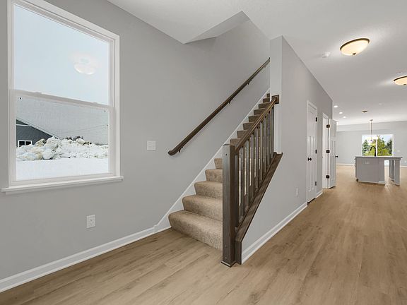 Entering this end-unit home from the garage, you’ll appreciate the convenient mud room. The laundry room is to the right and features a washer and dryer. There is also a powder room on this level.
