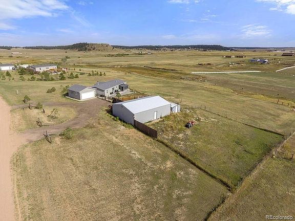 Sought after north Black Forest location on 5 horse friendly acres with gorgeous Pikes Peak views and under 4 miles from Highway 83! The home was built in 2014 with all main level square footage and is in fantastic condition. 20x24 garage. 30x40 barn/workshop, large oversized door for tractor, plumbed with an RV hook-up including water, electric and wastewater. The barn/workshop is also pre-plumbed for a bathroom and heat. 8x10 well shed w/ hot and cold water. Outbuildings, horses and RV's are allowed. Fenced dog run/backyard. Attached sunroom with hot tub. Open floor plan perfect for entertaining with neutral colors and nice finishes. Spacious kitchen with a pantry, island, walk-out to backyard, beautiful backsplash, breakfast bar, abundance of cabinetry and counter space. Private master suite with 5 piece master bath and walk-in closet. 2 guest bedrooms with separate full bath. Great room with vaulted ceilings, wood burning fireplace, crown molding and large windows for tons of natural lighting. Separate laundry with room for a full size freezer. Easy commute to Colorado Springs, Monument or Denver.