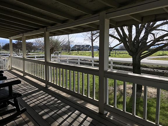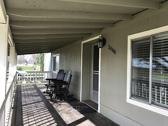 Lined with white fencing this manufactured home and shop sit on 1 acre of land. Home offers a spacious living room area with vaulted ceilings, built in hutch in dining area, 2 bedrooms, 2 bathrooms and a laundry room with an abundance of storage. Large front and back decks, fenced in garden area, 8 different varieties of fruit trees and attached storage room on back side of home. Shop is approximately 1600 square feet, has tandem doors and electricity. The property has an RV dump and plenty of room for parking. There are also two additional storage buildings on the property as well as a large circle drive.