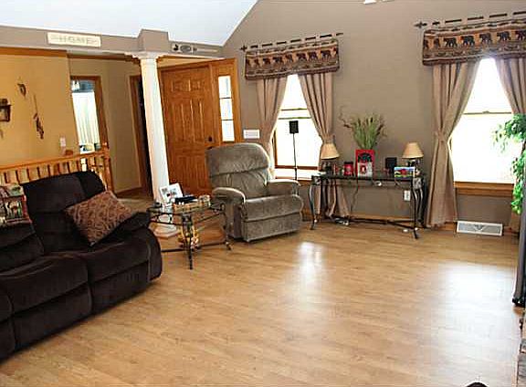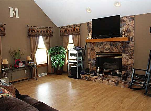 Fantastic country ranch w/ pole barn and 2.5 + acres. Rural setting but not too far out. Vaulted great room. Gourmet kitchen. Tile floored master bath. 30X50 pole barn. And...amazing "entertainment center" out back - patio, fire pit, lights, hot tub, sound system, water features, all overlooking wonderful pond and beach house.Live large and vacation at the same time in this fantastic country home.
