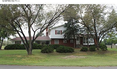 Small acreage in rural setting located 45 N of Downtown Denver & 40 min South of downtown Ft Collins with easy access to I-25. Lovely 4-level home with updated kitchen, wood floors and spacious living areas. Formal dining & living room with picture windows. 2 car attached garage, covered breezeway, unfin. basement. 1200 sq ft barn/garage with 1200 sq of upper level storage. Fenced yard, sprinkler system, mature trees. 2 horses OK. Neighborhood has 48 acres of open space & trails for riding.